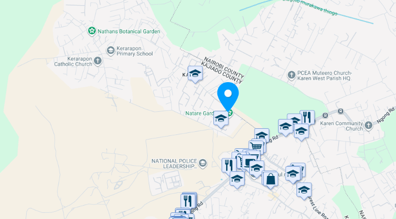 Map summaries and local area descriptions regularly describe Kerarapon as a “hidden gem located between Karen and Ngong” or refer to it in the Karen context.