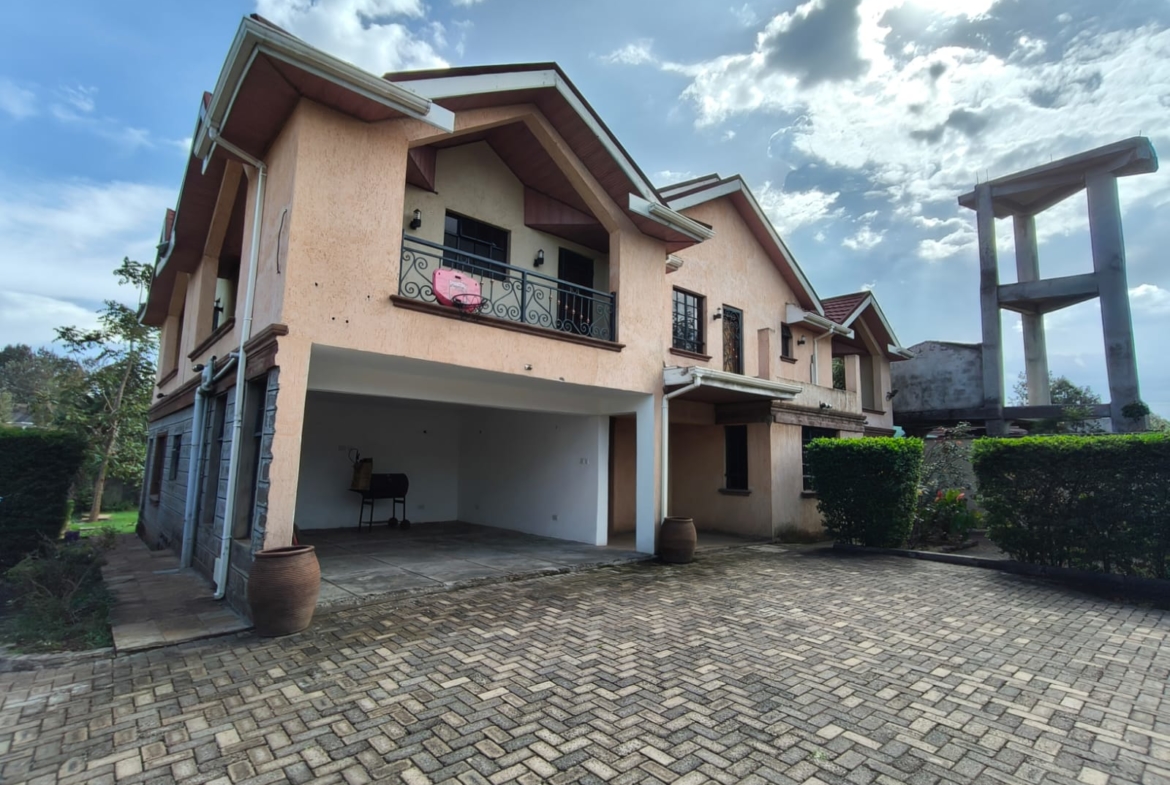 This is a well-located 4-bedroom maisonette for sale in Karen, sitting on a generous half-acre plot within a secure gated estate in a good residential neighborhood. The property enjoys tarmacked access roads, with a cabro-paved private driveway leading to the parking area.