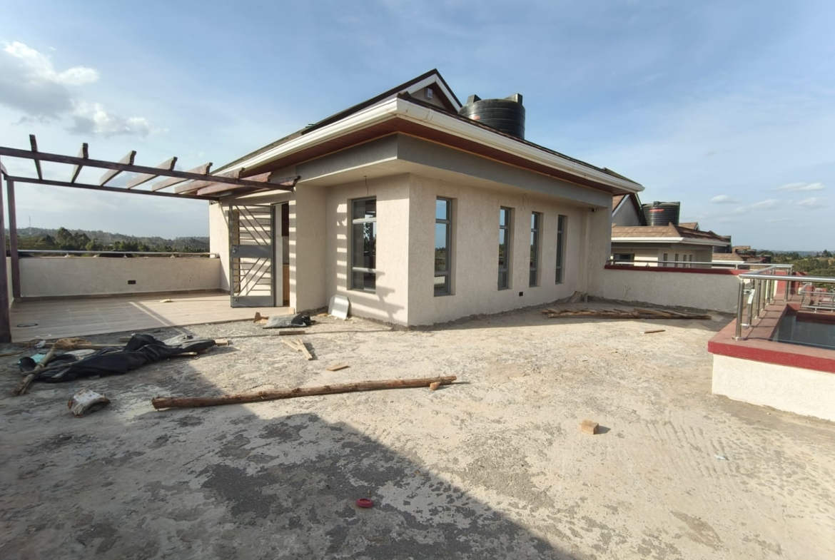 This is a spacious 5-bedroom maisonette sitting on a full โ -acre plot in the Karai area of Kikuyu, located within a secure gated community in a good residential neighborhood. The home is well-designed for comfortable family living, with generous indoor spaces and scenic views.