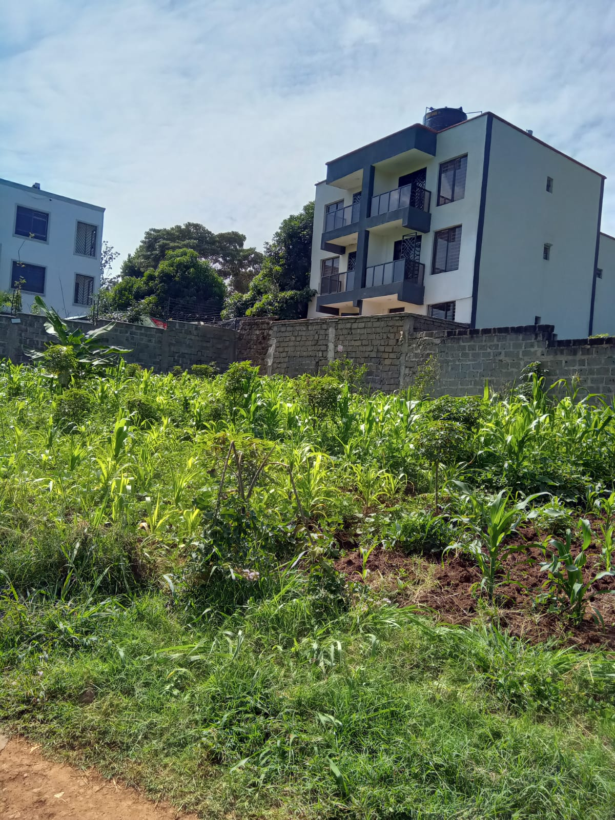 A commercial plot for sale in Nairobi, Kasarani near Hunters. It is located around 100 meters from the tarmac and in an area neighboured by residential flats. This makes it ideal to build similar apartment flats for rental income.